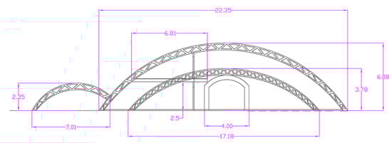 Figure 17 illustrates different stages in the creation of the 3D model. As presented, different elements of the roof were added, step by step, to the initial elements, to complete the drafted curved roof. Further details can be seen in