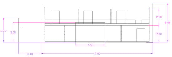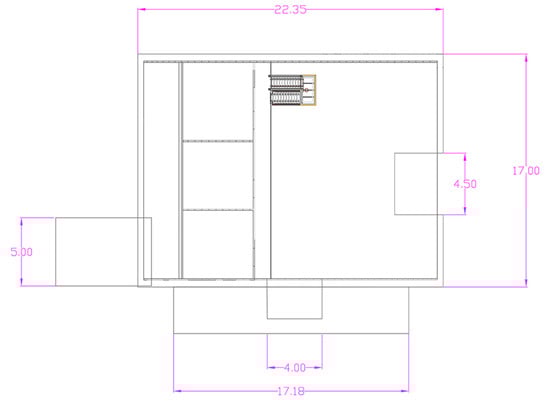 33], it would be classified as Region A2. It was assumed that the topography was flat, and there was no shielding effect. The building was in terrain category 3. The dynamic response factor for such a building was conservatively taken as 1.0. For the designed build, there exists a large door on the west side with dimensions of 4.5 m wide and 3.06 m high. There are also three windows on the east side, with dimensions of 2 m by 2 m.