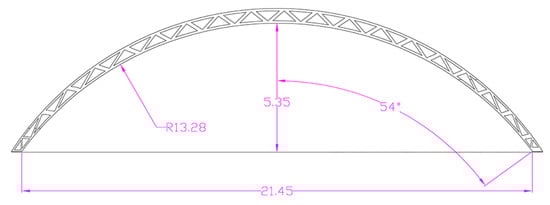 Figure 13 shows the design parameters for the roof arch of the 3D-printed house. The truss-like voids within this arch were not considered in the hand calculations (the arch is assumed to be fully filled as a solid concrete roof). Therefore, the gravity load for the roof would be overestimated in this hand-calculation, and over-conservative. It should also be noted that the depth of the roof is 17 m, as per the design in the 3D model within Strand 7 (