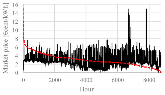 As seen in Table 5, the energy flexibility actions can lead to savings of up to €61, roughly 4% of the annual energy costs. However, through improper selection of price category it can lead to increased costs of up to €137, roughly 9%. The limited potential for cost savings can be partly explained by the behavior of the electricity market prices in 2015, shown in Figure 6. There are two characteristics in the curve that limit the cost-saving potential of the flexibility actions: the narrow variability of the prices, and their limited drops below a moving baseline. The market prices stay within the range from 1 to 6 €cents/kWh for 90% of the year, offering the price categorization a limited range for evaluation. Remarkably, in the cold season from January to end of March (hour 2160), when the energy demand for FH is high, the market prices oscillate between 2 and 4 €cents roughly 80% of the time. That is, the period with large energy demand and thus higher potential to implement the flexibility actions, faces limited price variations and thus provides limited cost savings. As for the limited price drops, it can be seen in Figure 6 that the market prices tend to follow a moving baseline, with prices frequently going up but scarcely going down. This prevents the flexibility actions from providing higher savings, as the prices considered low are only marginally lower than the baseline. Moreover, as shown in Table 5, the flexibility actions lead in all cases to higher net electricity exchange, which further diminishes the savings incurred by the energy modulation: higher imports at low prices offer low saving potential. Finally, the contribution of the market price to the total import price is limited. On average, the market price represents 30% of the import price, where the rest and transmission prices and taxes. Thus, the variation of the hourly market prices has a diminished proportional effect on the price to be paid for the imported electricity. This also has the adverse consequence that each additional kWh of imported electricity can offset the savings by multiple kWh of shifted imports.