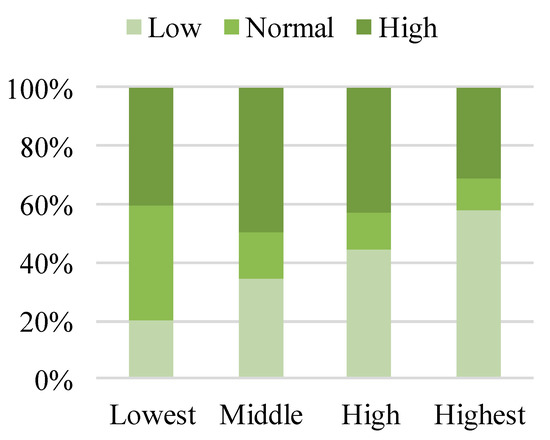 The behavior of the flexibility indicators reinforces the argument that less frequent categorization of prices as low leads to lower costs and loads, due to the demand increase caused by the flexibility actions. Values of close to 1 indicate that most of the shiftable energy was consumed at low HEP, thus lowering the cost of each unit of imported energy. Yet, as shown in Table 5, higher values of were found for the options with high costs and loads. For comparison, in the Lowest case, 1858 and 537 kWh were shifted to low and high HEP, respectively, while in the Highest case, 3047 and 462 kWh were shifted. While in the Highest case a larger proportion of energy was shifted to low HEP than to high HEP, the 6.5% increment in the total load compared to the Lowest case lead to higher costs. The detrimental behavior is also shown by the increasing values of and decreasing values of , as they indicate that the energy being charged into the system is increasing more than the energy being discharged: the system is using the charged energy inefficiently. Therefore, lower costs and loads are reached when the actions that charge energy into the system—the actions taken when prices are low—are taken sparsely. Briefly, shifting energy demand to lower HEP may be detrimental when it leads to higher loads.
