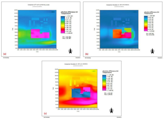 The results from microclimatic simulations B and A are compared to determine thermal changes at the selected site.