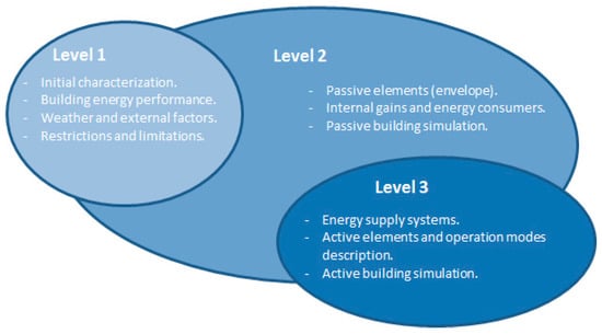 Level 3: To transfer the simulation model of the exemplary building typology to the main simulation engine environment in order to simulate the energy supply systems, including all active elements and operation modes. As a consequence, this last level will obtain results for the complete energy model simulation of the building, aiming to maintain the comfort conditions inside the building (set-point temperatures).