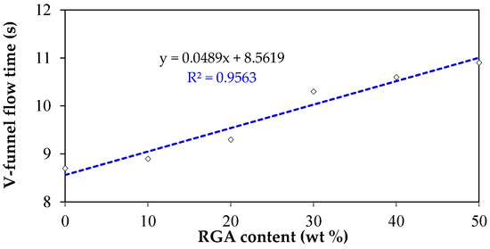 Test results of the fresh properties (slump flow and V-funnel flow time) of SCM mixtures incorporating RGA are presented in Table 5.