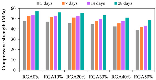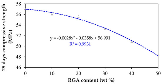 Relationship between RGA content and corresponding 28 days compressive strength.