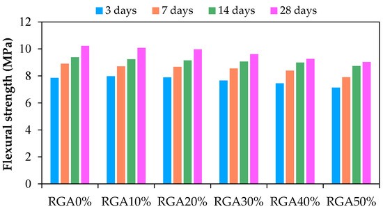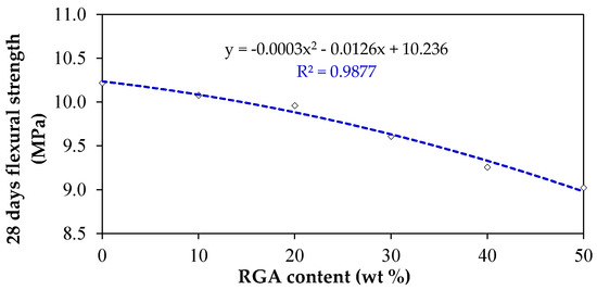Relationship between RGA content and corresponding 28 days flexural strength.