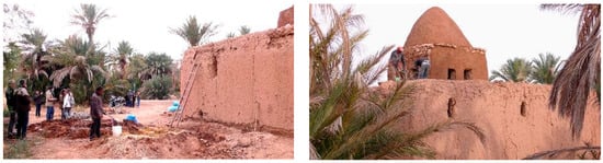 22]—which includes the detail of the construction system and the materials that must be used—is carried out. Then, the workshop is held with the participation of students who observe and document the restoration process conducted by local professionals, or ‘maâlem’, because there is nobody better than them to make the traditional construction techniques of their region known.