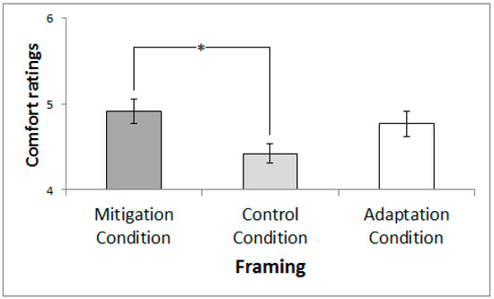 Experiment 2 revealed a framing effect on perceived overall comfortableness, congruent with Experiment 1 and previous research [11]. The framing effect appeared somewhat stronger in the mitigation condition, but there was no difference between the two framing conditions. Because of this, the safest conclusion from Experiment 2 is arguably that the psychological evaluation of environmentally certified buildings is biased, but the reason for this environmental certification—mitigation or adaptation—has only marginal effect.