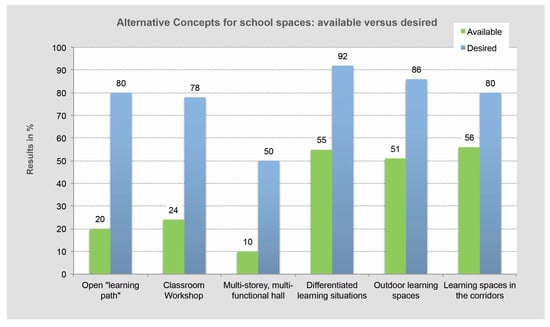 Alternative concepts for school spaces: available versus desired; data translated from [9].