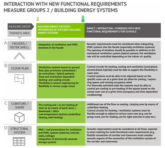 Measure group 2: interaction of measures 2A, 2B, 2C and 2D with new functional requirements for schools [28].