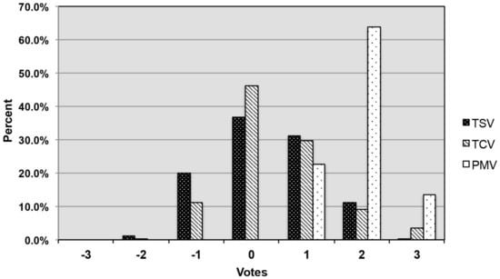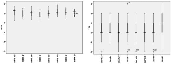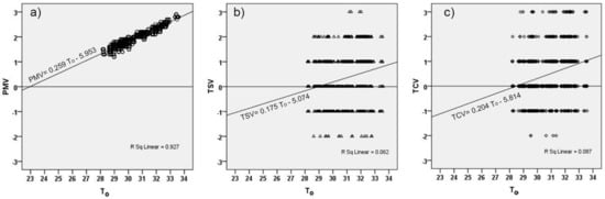 o). The TSV and TCV were gathered from the respondents’ votes written in the questionnaire, while the PMV calculated based on ASHRAE standard [