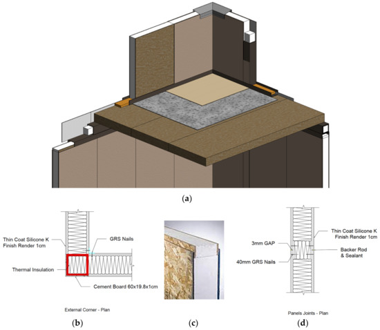 Moister protection is a concern for SIPs with OSB sheathing, but it is evident that when it comes into contact with water, the structural integrity of the panels can be saved if the OSB is quickly exposed to allow it to dry [20]. Therefore, it is recommended that OSB panels be used without extra external cladding. Although SIP Systems have been widely designed and used as a fixed wall, floor and roof panels, as mentioned above, their suitability for use as demountable external/internal wall, floor and roof panels was investigated in this research, as shown in the following sections.