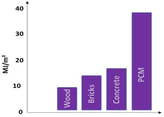 Generally, a description of the works achieved on modeling of three heat transfer modes modeling, management of boundary conditions and transitional thermal analysis, gives a clear vision on the thermal domain. The results confirm that the temperature peaks in a local equipped with PCM insulation could be reduced up to 5 °C (various studies achieved proclaim temperature reductions between 3 and 5 °C), and the electricity consumption linked to air-cooling system could decrease by 30% []. The possibility of storing energy also avoids using heavy materials, such as concrete and creates a high inertia, which can lead to overheating during weighty internal loads [].