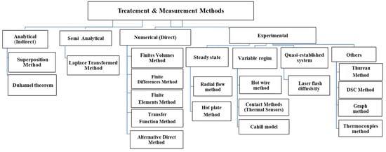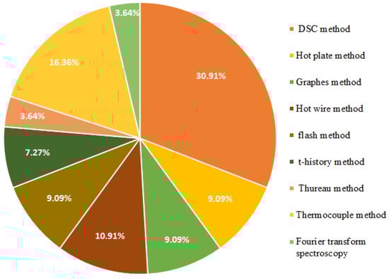 In experimental studies, we generally work with thermal measurement methods which are schematically represented in Figure 9, such as Differential Scanning Calorimetry (DSC), Hot plate method, Graph method, Hot wire method, Thermocouple method, Flash Method, T-history method, and Method of variation of thermal sensitivity of luminescent substances (Thureau Method) [].