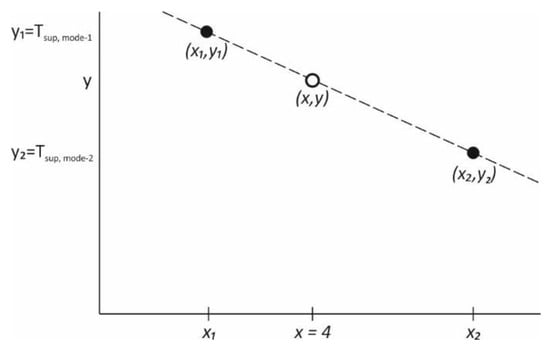 where x1 and x2 indicated Tdif of the cases of STR_1 and STR_2, respectively, were applied. Figure 7 explains the implemented method to determine the optimum Tsup for Case (5) and Case (6).