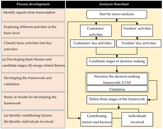 In this section, the transcriptions from the interviews are examined using thematic analysis techniques [102,103] in order to identify themes representing the stages a customer passes through after technology investigation. The themes were identified based on customer and vendor activities and were used to structure the adoption decision framework.