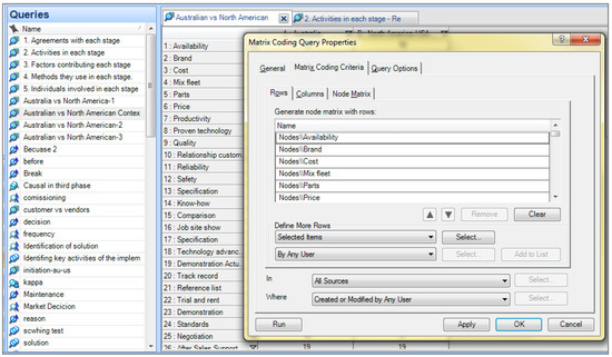 The participants were recruited using a combination of three strategies: (a) a criterion-based strategy; (b) a comparative strategy; and (c) a chain strategy [87,88,89]. The combination is designed to select appropriate participants in order to maximize the value and quality of the data from the interviews. For example, one technology that was investigated was advanced mobile cranes. Five participants were recruited based on the combination sampling strategy of the ‘criterion-chain’ from the crane business. Each of these participants was recruited specifically because they had either purchased or sold one or more cranes from a particular crane manufacturer (Brand x) with a large market share, and it was desired to see both sides of the purchasing operation for the same company.