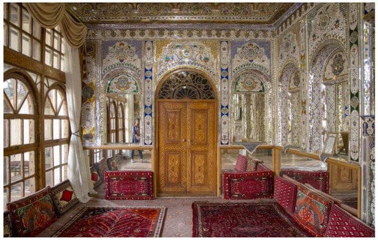 - Atrvash, A.; Fayaz, R. The effect of orsis on the air in the interior (Case Study: Zinat almolk of shiraz). Archit. Urban Plan. 2015, 9, 19–26. [Google Scholar]