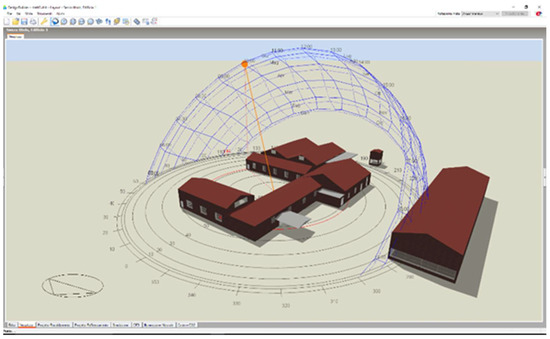 The last phase of the proposed method concerned the development of technical solutions to solve the problems detected in the previous phase. In particular, it was necessary to develop and propose building solutions and actions to lower indoor temperature. The utilization of DesignBuilder, a building energy simulation software program based on EnergyPlusTM dynamic simulation engine (Figure 8), was particularly useful. The modelling and analysis carried out with such a software program allowed simulation and verification, in real-time, of the effectiveness of certain solutions. The developed model of analysis was calibrated by comparing the instrumental thermo-hygrometric measurements taken on site and the values obtained from the simulation under real conditions [21].