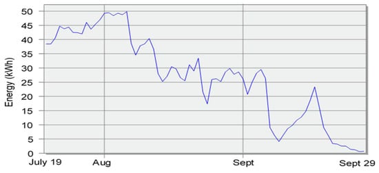 The above-mentioned interventions were not sufficient to obtain an optimal temperature in the summer season, which is why an HVAC installation, with a specific electric cooling system keeping the temperature of the oil storage area below 20 °C, was added. After taking the actions above, the estimated energy consumption, from 19 July to 29 September, to cool the oil storage area by means of an HVAC system, was 1926.24 kWh, whereas, without any interventions, the estimated energy consumption would have increased to 2639.25 kWh (Figure 10). Therefore, such interventions led to 30% economic savings compared to the initial condition, thanks to lower energy consumption.