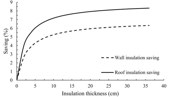 Figure 3 shows the impact of the insulation thickness on the annual energy consumption for the baseline villa model.