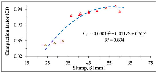 where: Cf is compacting factor; and S is the slump in mm for fresh RHA concrete