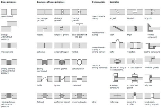 A complete and comprehensive collection of joint design is found in the ‘Façade Construction Manual’ by Herzog [31]. Figure 7 displays the collection of possible joint design, such material offers great inspiration for design and development of waterproof seals.