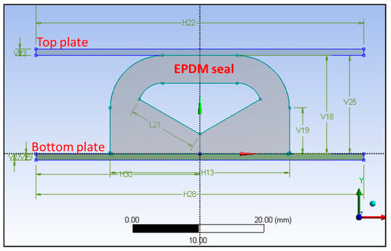 A finite element model (FEM) was developed to evaluate the compression, deformation and interaction with fluid pressure of the rubber gasket solution through ANSYS [32], this is shown in Figure 7.