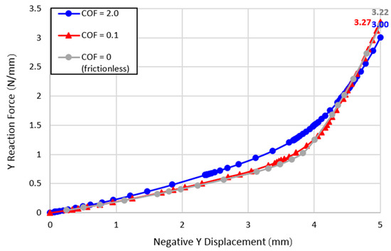 Y reaction force vs. Negative Y displacement for the simulations.