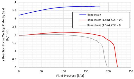 The results from Figure 13 show that the maximum fluid pressure depends on the friction value between the seal and top plate. A lower COF resulted in lower maximum fluid pressure.