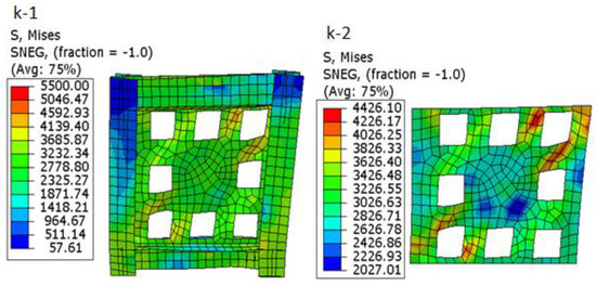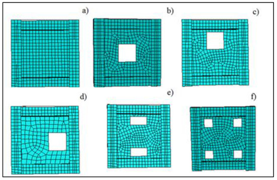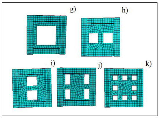 - Compared to specimens with two openings (model i), stress was more conveniently distributed in specimens with a single opening (model g). This distribution is more uniform in the case of vertical openings (model i) as compared to horizontal cases (model h).