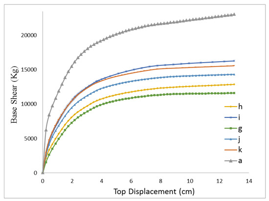 - Displacement is lower in the case where openings are distributed in the plate (models f, e, g, and k) as compared to other models.