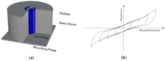 Schematic description of (a) a Lead Rubber Bearing (LRB) device (b) LRB nonlinear hysteresis behavior.