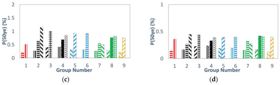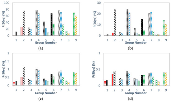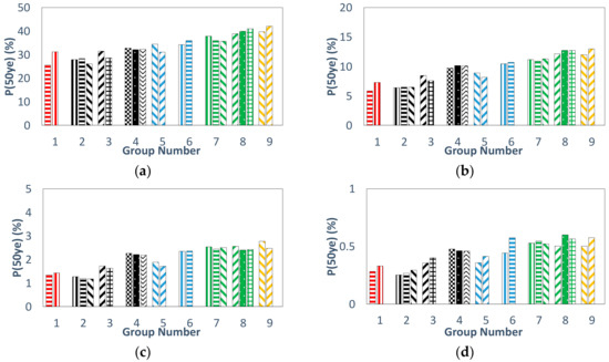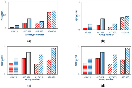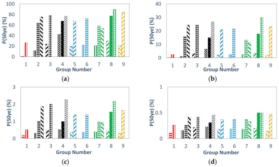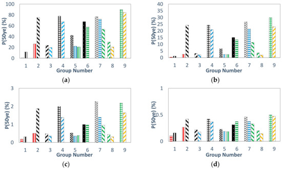 50-year probability of exceedance of SC “Category 2”: (a) DS1, (b) DS2, (c) DS3, (d) DS4.
