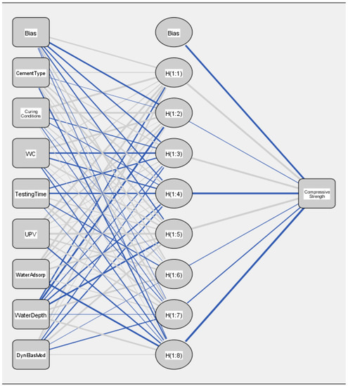 - Atici, U. Prediction of the strength of mineral admixture concrete using multivariable regression analysis and an artificial neural network. Expert Syst. Appl. 2011, 38, 9609–9618. [Google Scholar] [CrossRef]