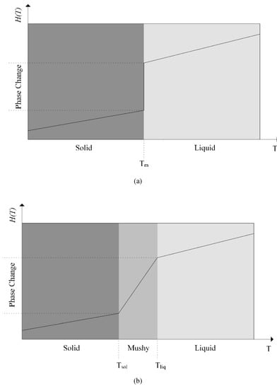 - Brusche, J.H.; Segal, A.; Vuik, C.; Urbach, H.P. A Comparison of Enthalpy and Temperature Methods for Melting Problems on Composite Domains. In Numerical Mathematics and Advanced Applications; Springer: Berlin/Heidelberg, Germany, 2006; pp. 585–592. [Google Scholar]