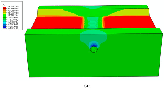 In the numerical simulation, the Mohr–Coulomb model was used for rocks and soil, whereas the elastic model was adopted for the support of uplift piles, cover plates, and subway tunnels. The specific parameter values are provided in Table 2.