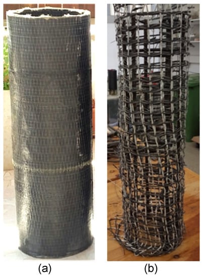 - Eid, R.; Cohen, A.; Guma, R.; Ifrach, E.; Levi, N.; Zvi, A. Multi-layer TRC-TSR internal confinement for high-strength circular reinforced-concrete columns. In Proceedings of the 9th International Conference on Fibre-Reinforced Polymer (FRP) Composites in Civil Engineering (CICE 2018), Paris, France, 17–19 July 2018. [Google Scholar]