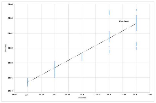 The model has been calibrated comparing the data acquired with ASHRAE Guideline 14 [28,29] range. Figure 6 describes the regression line R2 and Table 1 reports the outcomes of model calibration: in the first column, statistical index denomination; the second column reports the reference values following ASHRAE Guideline 14 range, and the third column reports result values from comparison between model results and on-site monitoring data. The results show that, despite the reduced time interval, the model is validated for the purpose of comparing the proposed retrofitting scenarios.