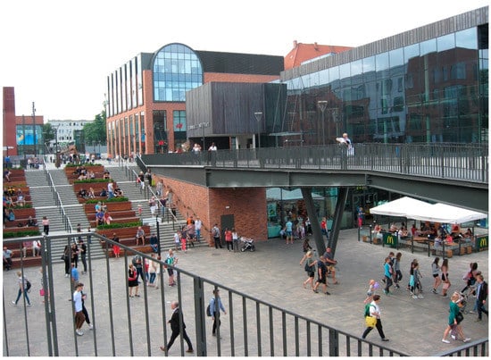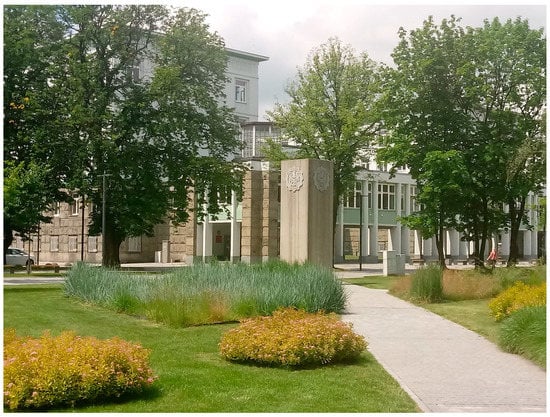 - Tymkiewicz, J.; Winnicka-Jasłowska, D.; Fross, K. The campus space in research and student projects. In Advances in Human Factors, Sustainable Urban Planning and Infrastructure, Proceedings of the AHFE 2018 International Conference on Human Factors, Sustainable Urban Planning and Infrastructure, Orlando, FL, USA, 21–25 July 2018; Charytonowicz, J., Falcao, C., Eds.; Loews Sapphire Falls Resort at Universal Studios: Orlando, FL, USA; Springer International Publishing: Berlin, Germany, 2019; pp. 24–35, (Advances in Intelligent Systems and Computing; Volume 788, pp. 2194–5357). [Google Scholar] [CrossRef]