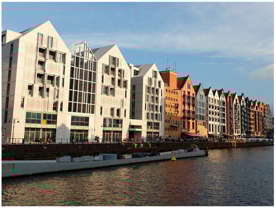 The problem of overlooking architectural issues when considering sustainable cities was noted by Emile Mardacana who pointed out that, “The definition of a smart city based on six key smart elements, including economy, management, people, science and technology, life and the environment, ignores such a basic component as the built environment, which is a physical platform of a smart city” []. To provide an example, we can refer to publication [], in which each of the six pillars (building blocks of a smart city) was assigned from 10 to 22 features. In the presented set there was only one, very general reference to architecture, in the context of the latest research conducted by universities “for cultural heritage, architecture, planning, development, and the like” [], (p. 13). Therefore, it should be noted that: “Architecture is all around us. From our homes to our offices, our stations to our skylines, the built environment defines the world we live in []". It should be added here that even the concept of “smart city architecture” has been taken over by computer science and it does not apply to the built environment, but to the structure of software []. In turn, in the literature on the subject of architecture and urban planning, even if there are problems at the intersection of architecture and sustainable development and smart city technology, the authors focus on environmental or technological aspects, and the reference to architectural aspects is missing. Architecture appears only in general keywords such as “smart buildings” and “urban infrastructure”, but with no specific information, for example, how the idea of sustainable smart city translates into the form or facades of buildings. Furthermore, yet the environment of sustainable smart cities is designed by architects in terms of usability, but also in terms of form. Architects provide a physical form for the entire ecosystem of solutions created by smart and sustainable residential houses, smart and sustainable public utility buildings, which in turn create smart and sustainable housing districts []. In this way, the external image (appearance) of architecture is created, which in turn translates into the image of districts and cities together with their recreation and rest spaces furnished with small architecture. On this point, it should be noted that the literature on the subject includes a few publications referring to a more general level, i.e., to the urban form of smart cities []. Yet, the image at the architecture level, i.e. the form of buildings, facades, roofs, details and what is happening in the space around these buildings—in terms of the development of sustainable smart cities has not been a popular research topic so far.