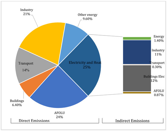 In terms of industry-related carbon emissions, IPCC [11] has recognized “electricity and heat production” as the leading GHG emitting sector, accounting for 25%, while “AFOLU” is reported as the second-highest greenhouse gas emitting sector, accounting for 24% of the total carbon emissions. As indicated in Figure 1, “transport” and “buildings” sectors account for 14% and 6.4%, respectively, of the total industry-related carbon emissions. In terms of indirect carbon emissions, “buildings” account for 12%, which is the largest contribution, while “industry” accounts for 11%. Thus, it is evident that “buildings” account for a significant portion of industry-related carbon emissions. As stated by Scheuer, et al. [12], buildings have a considerable contribution to global environmental impacts, and McKinsey [13] indicated that the building sector accounts for 20 to 30% of the global carbon footprint. It is also predicted that this amount is likely to grow further in the future. The intense energy use of commercial buildings is likely to increase the carbon footprint of buildings even further [14]. Hotels are considered one of the most demanding energy consumers among all the categories of the building stock due to their 24-h operation and the high variety of functions and facilities [4,15,16]. Moreover, the habits of the occupants have caused the hotel sector to be one of the highest energy-consuming sectors [17]. However, Filimonau, et al. [14] stated that despite the effect of the hotel sector on the environment, a limited number of studies exist which quantify the GHG emissions of hotels.