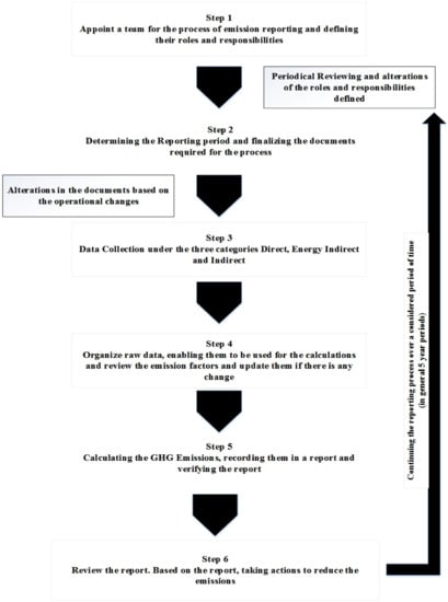 Based on the literature findings, an outline was developed (Figure 2) which was followed during the carbon quantification process. The process of GHG emission reporting is a combination of different processes. It is essential to follow these steps closely to implement a successful reporting mechanism. This developed mechanism could be followed as a standard practice for carbon quantification in the hotels.