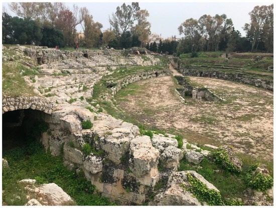 Vegetation growth. The Greek Theatre of Syracuse (UNESCO World Heritage Site), Sicily, Italy, April 2019.