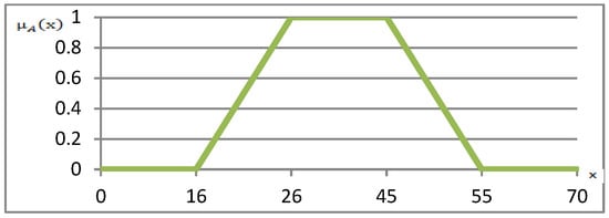 - For the factor: air temperature, the membership function is described in Equation (7).