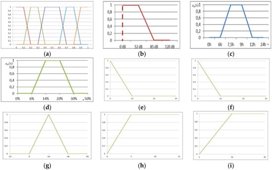 - For the factor: noise, the membership function is described in Equation (2).where dB stands for decibels.