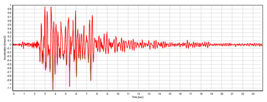 35]. In order to take into account the ground motion in Sarajevo, according to the new seismic hazard map, the accelerogram from the Petrovac earthquake (with a PGA of 0.43 g) was scaled down to 0.1 g (