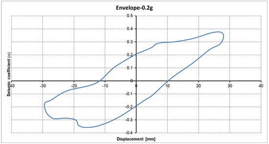 The hysteresis curve originated by the 0.2 g scaled accelerogram was determined for the control node 44014 and the relationship between the seismic coefficient (ratio between base shear and gravity forces) and displacement has been obtained as shown in