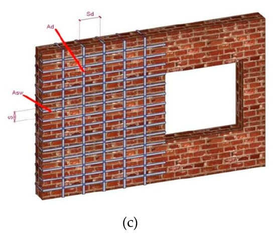 Figure 15b were reinforced at the ground floor with carbon FRP bidirectional strips, having thickness of 2 mm and a width of 200 mm and spaced every 0.5 m, see S