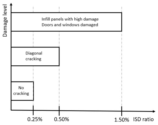 Relationship between maximum ISD ratio and infill masonry damage level proposed by FEMA-306.